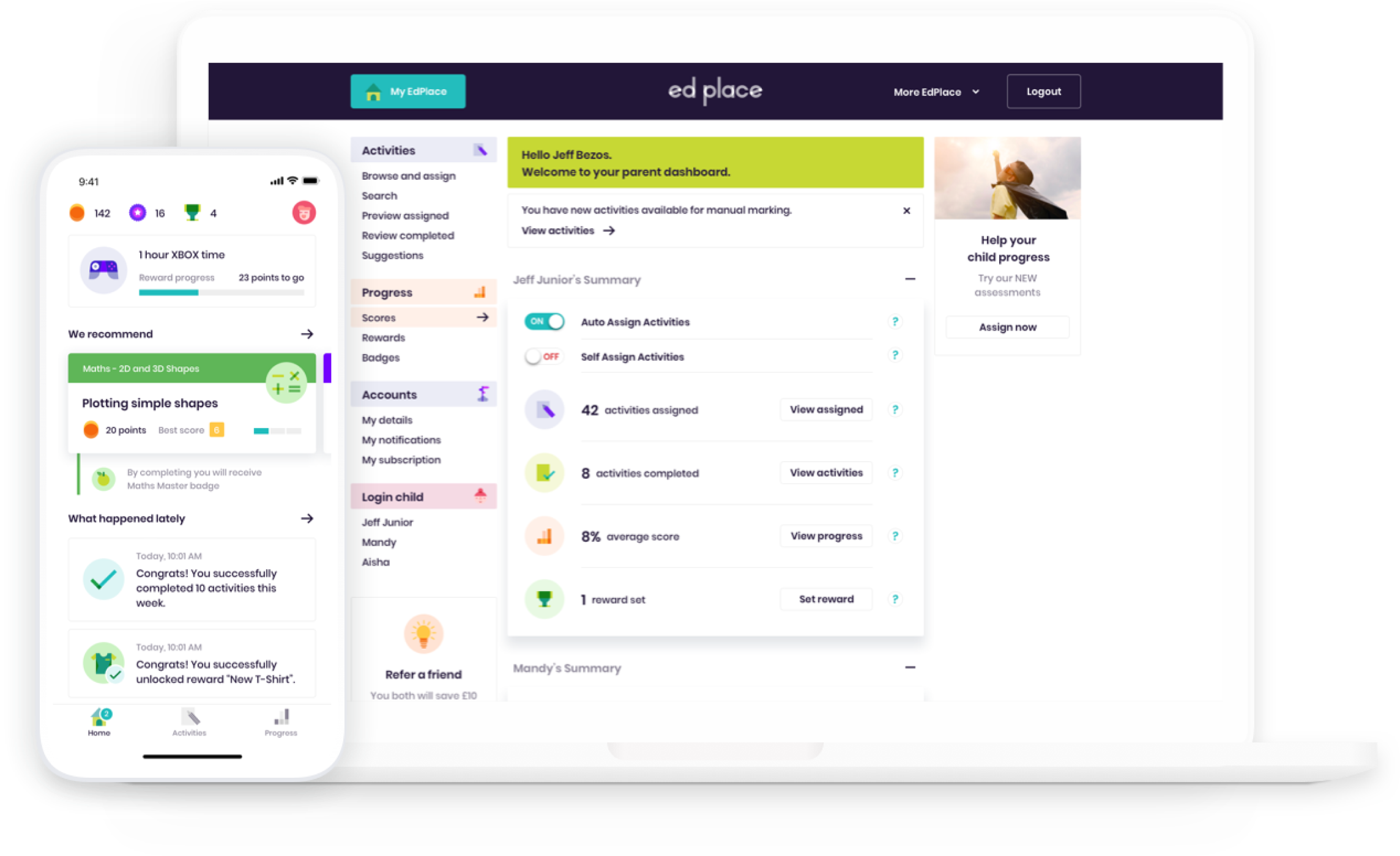 Track progress on your parent dashboard